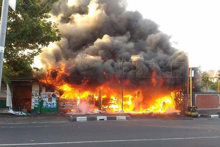 Saksi mata melihat ada yang membakar sampah di depan bengkel lalu apinya membesar dan membakar bengkel. Bahkan beberapa bahan makanan seperti non-dairy creamer susu bubuk dan bubuk rempah-rempah dapat dengan mudah terbakar saat beterbangan di udara. Total kerugian lebih dari Rp 2 miliar.